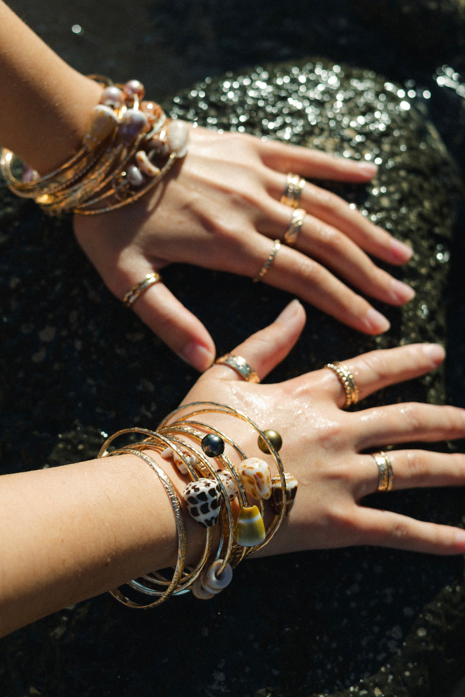 Explore our curated selection of handcrafted bangles, designed to mix, match, and layer effortlessly. Whether you love simple jade or fun shells, each piece is made to help you create a stack that feels uniquely you.