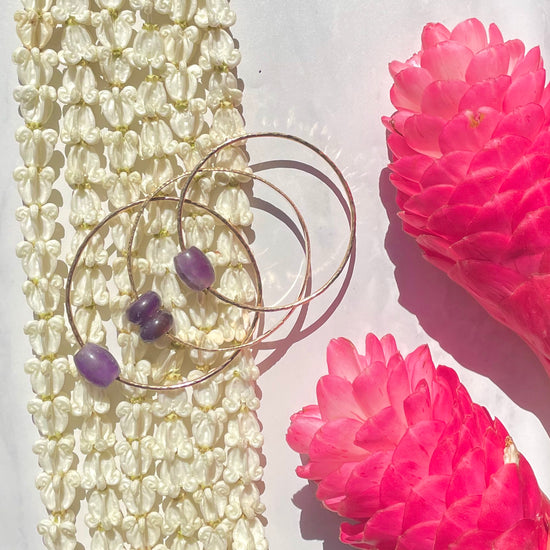 This handcrafted Amethyst Barrel Bangle is perfect for anyone looking for a versatile bangle. Amethyst is a stunning gemstone, it has been said to bring calmness, balance, and peace to the wearer, perfect for someone looking for healing crystals to help them in their daily lives.