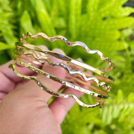 The Nōhie Stacking Bangle!! Nōhie translates to Simple and Basic in ʻŌlelo Hawaiʻi, which is exactly what this bangle is- the perfect basic to go with any bangle stack!! Just right for everyday wear!