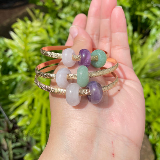 The gorgeous Lili'uokalani Bangle can now be customized to your liking with up to four gemstones and you can now choose a variety of different beads! Mix & Match and find the combination that fits Y O U!