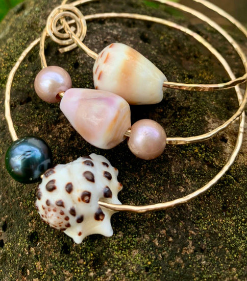 The Drupe Shell Bangle is a great choice for those looking for something a little different. This shell is described to have a round shape with a uniform black or brown pattern. Adorn yourself with the Drupe Shell bangle bangle, perfect for a shell bangle stack.