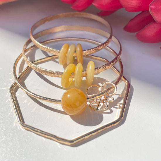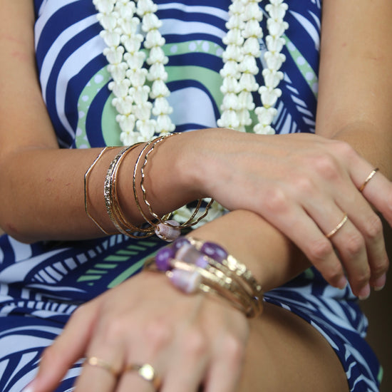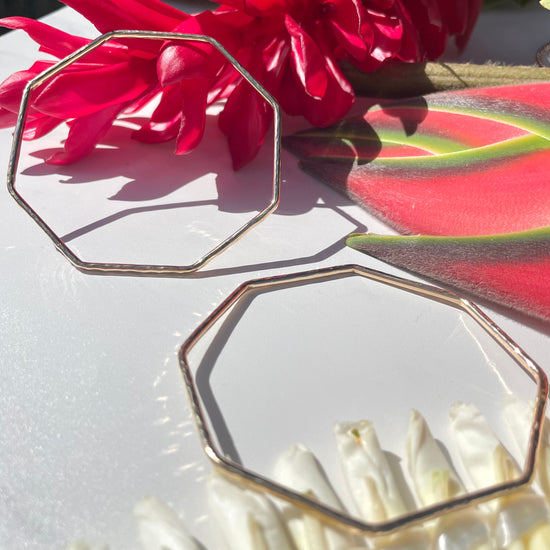 The HUINAWALU Bangle is a creative twist to a simple bangle. With its unique octagonal shape, it's sure to become your new favorite! Whether you're adding some texture to your stack or simply want something different, this is a must-have.