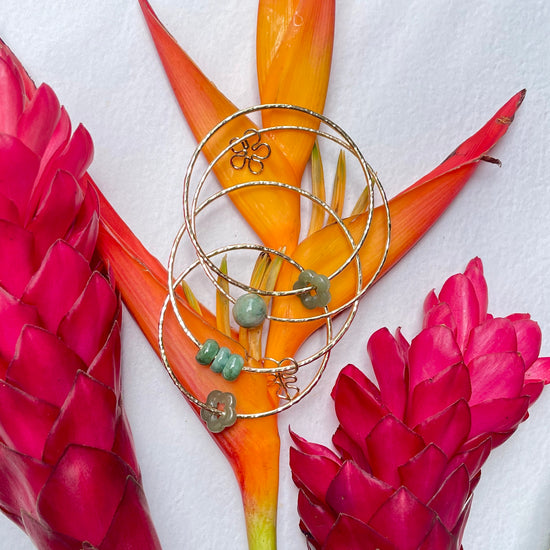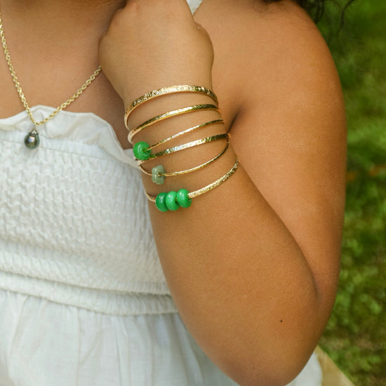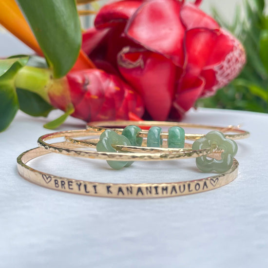 This Jaded Hōkū Bangle features a dainty Jade star charm that adds a unique design to your bangle stack.