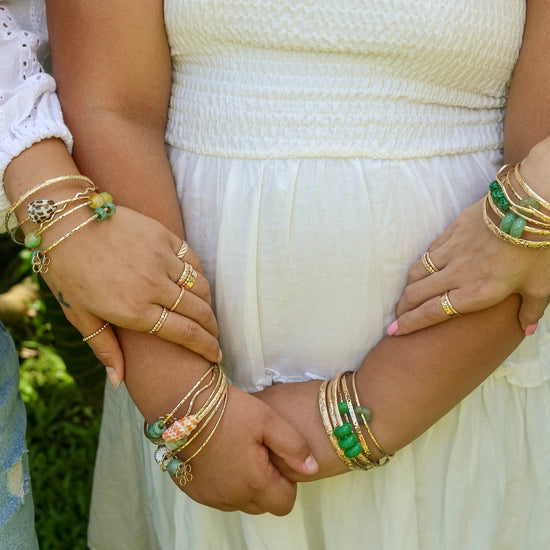 ✧To clean: Simply wash your bangles using mild dish soap and water. Lather the soap and water in your hands. Next, gently swipe the soapy mixture through the bangle. Pat dry with a napkin or cloth and let sit to fully dry. You may also use mineral oil to bring back shine to your shells.