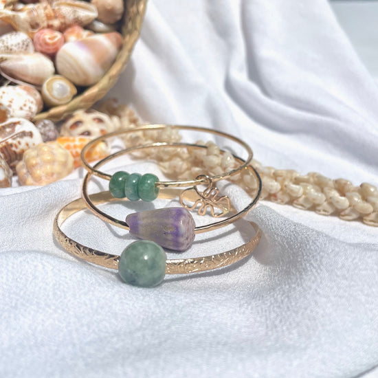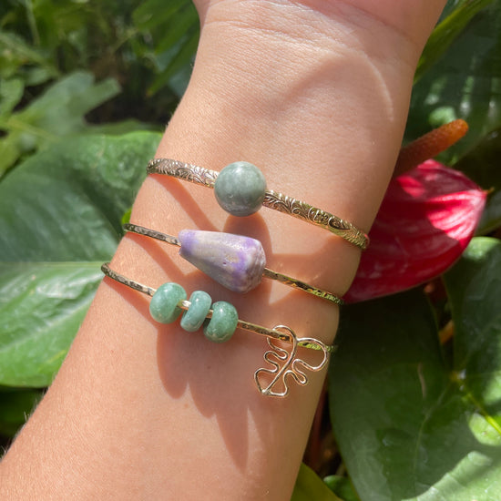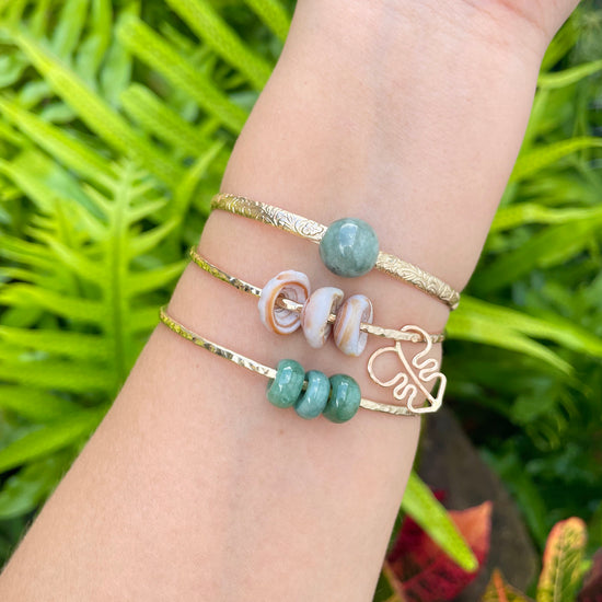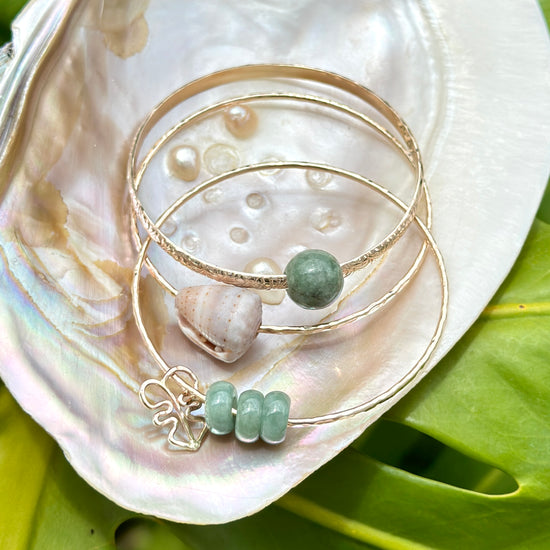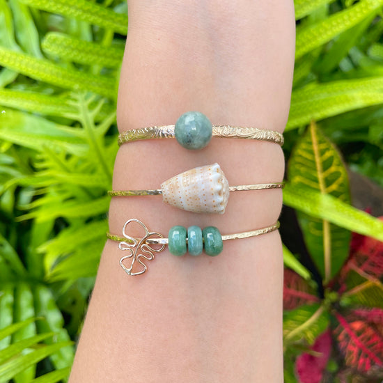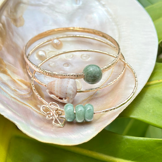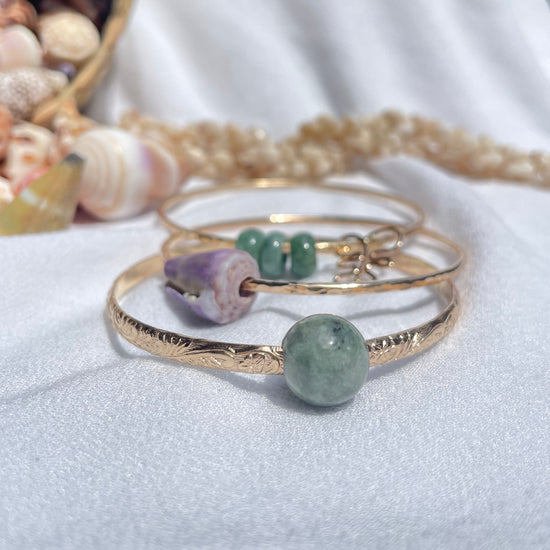 ✧ Liliʻuokalani Bangle w/ a round Burmese Jade Bead