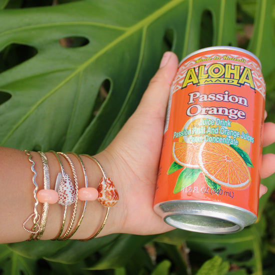 This listing is for the Kauwela Passion Orange Donut Bangle. The orange hue evokes Hawaiian Sun's Passion Orange—sweet and refreshing.