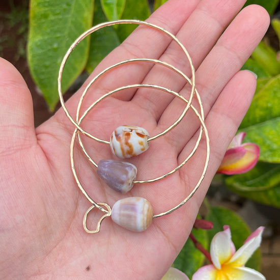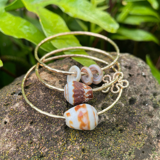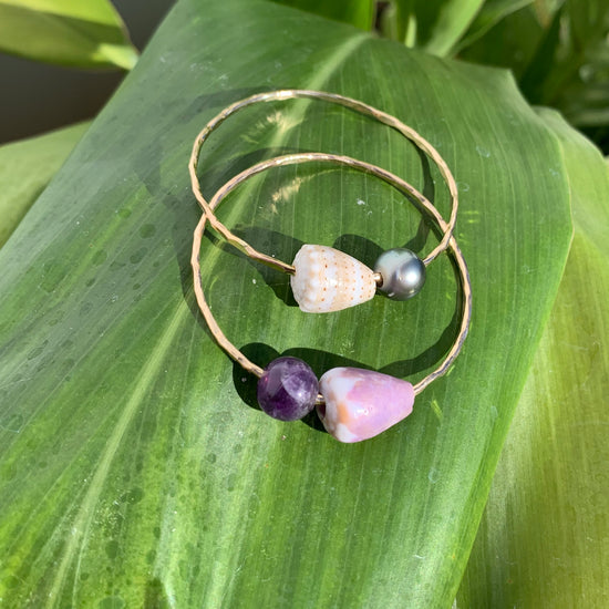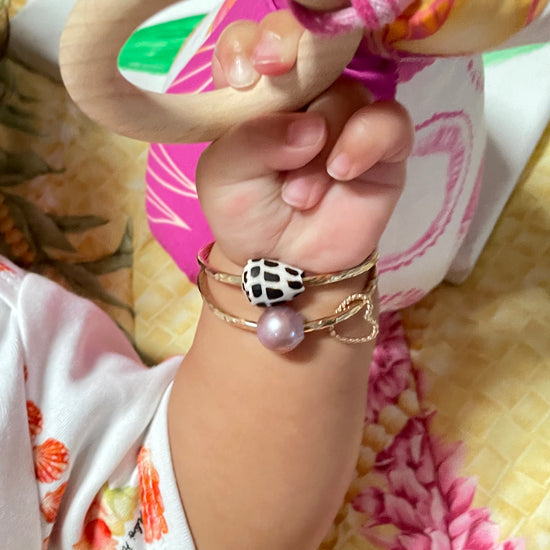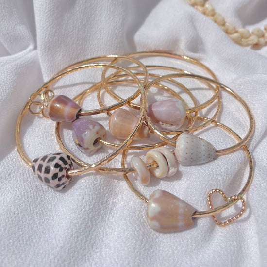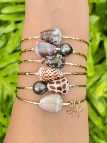 The highly sought after Shell bangle comes in a Keiki version. With over 14 shells to choose from you'll find lots of different designs. Pick out the perfect shell bangle for your keiki.