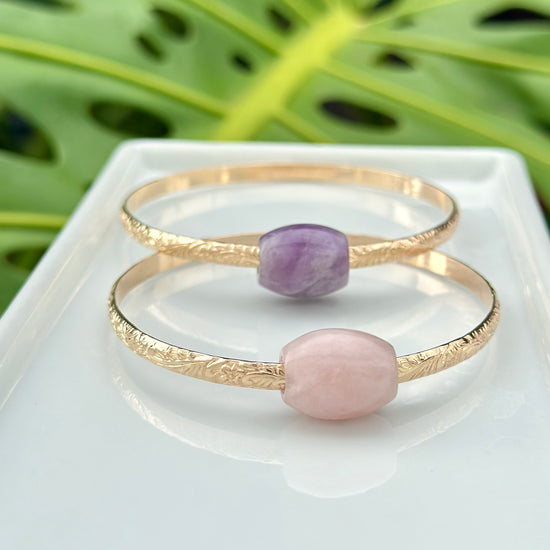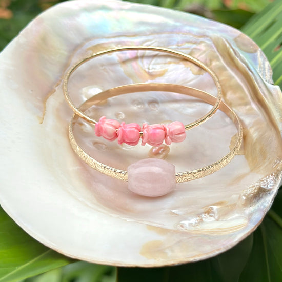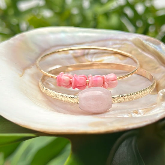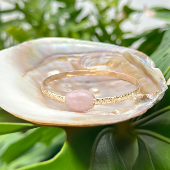 Liliʻuokalani Bangle w/ Rose Quartz Barrel