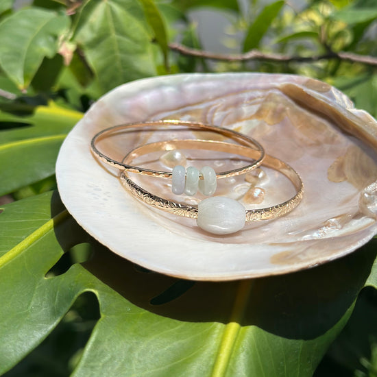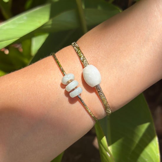 ✧ Liliʻuokalani Bangle With a White Jade Barrel