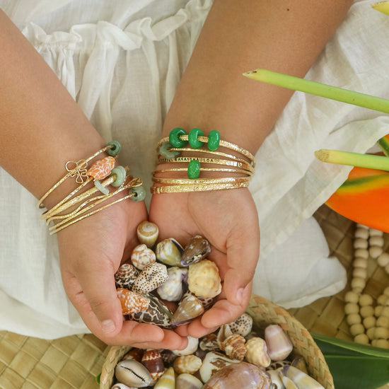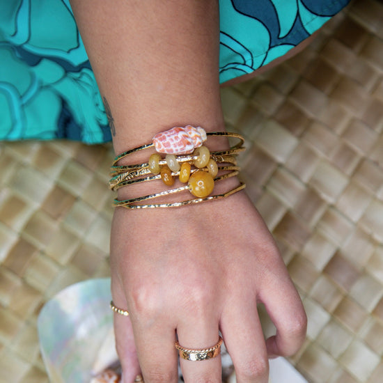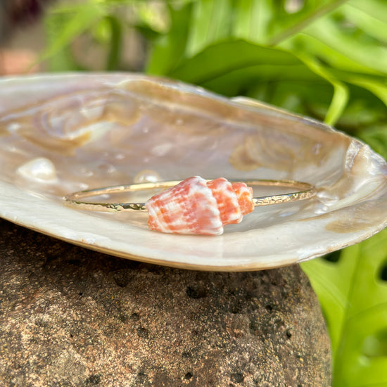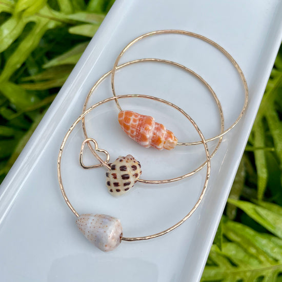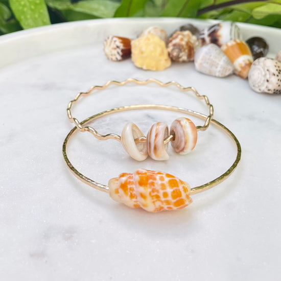 A true local girl staple, this Miter Shell Bangle will certainly fill your heart with joy! So unique yet so beautiful, every shell is one of a kind. Add a touch of the oceans beauty to your collection.