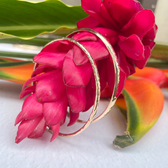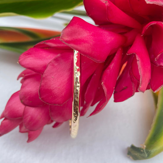 The Pu’ipu’i Bangles comes in 6 gauge wire, one of our thickest bangles!! Made from a different bangle style than our normal bangles, it has a round surface and a flat inside. This bracelet is heavy and will withstand anything and a great stacking bangle.