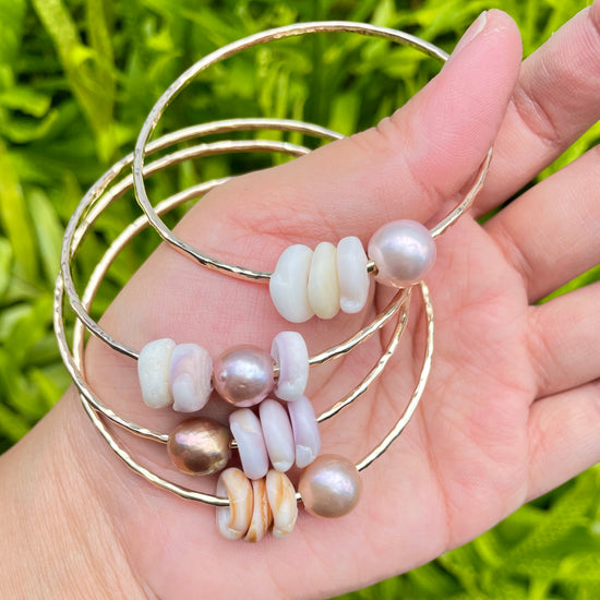 ✧To clean: Simply wash your bangles using mild dish soap and water. Lather the soap and water in your hands. Next, gently swipe the soapy mixture through the bangle. Pat dry with a napkin or cloth and let sit to fully dry. You may also use mineral oil to bring back shine to your shells.