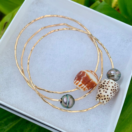 ✧To clean: Simply wash your bangles using mild dish soap and water. Lather the soap and water in your hands. Next, gently swipe the soapy mixture through the bangle. Pat dry with a napkin or cloth and let sit to fully dry. You may also use mineral oil to bring back shine to your shells.