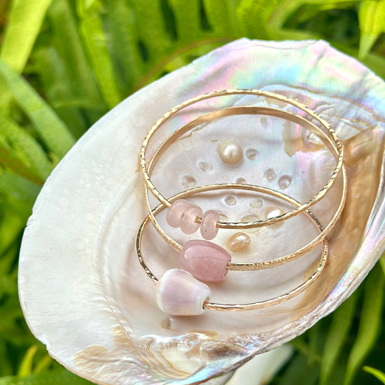 ✧To clean: Simply wash your bangles using mild dish soap and water. Lather the soap and water in your hands. Next, gently swipe the soapy mixture through the bangle. Pat dry with a napkin or cloth and let sit to fully dry. You may also use mineral oil to bring back shine to your shells.