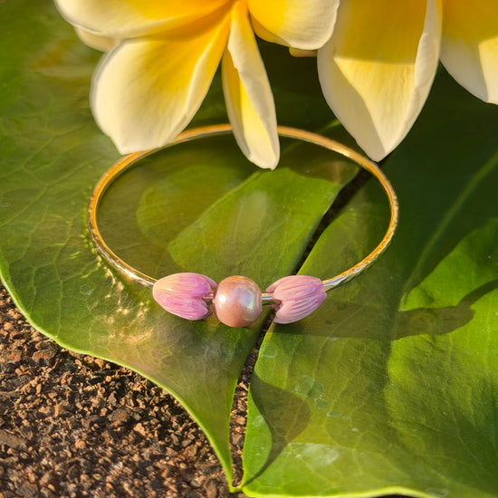 ✦ TWO PURPLE PIKAKE BEADS WITH A EDISON PEARL