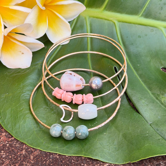 ✧To clean: Simply wash your bangles using mild dish soap and water. Lather the soap and water in your hands. Next, gently swipe the soapy mixture through the bangle. Pat dry with a napkin or cloth and let sit to fully dry. You may also use mineral oil to bring back shine to your shells.