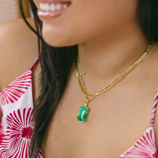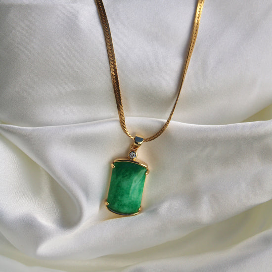 Get Jaded with our Waʻahila Necklace; it features a chunky Jade pendant, with a CZ stone. Choose your length of 16", 18" or 20".